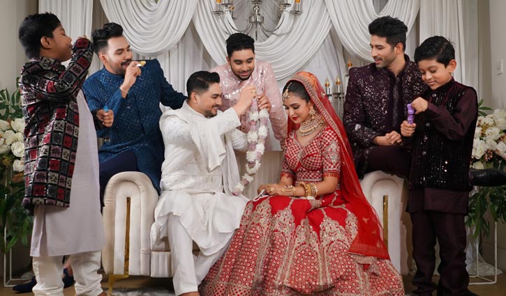 চিত্রনায়ক জয় চৌধুরী ও মডেল-অভিনেত্রী জেরিনকে বরের সাজে ও কনের সাজে তুলে ধরা হয় এই শুটে। বর্ণিল পোশাক, আলোকিত সেট ও বিয়ের আবহে শুটিং হয় পুরো আয়োজন।